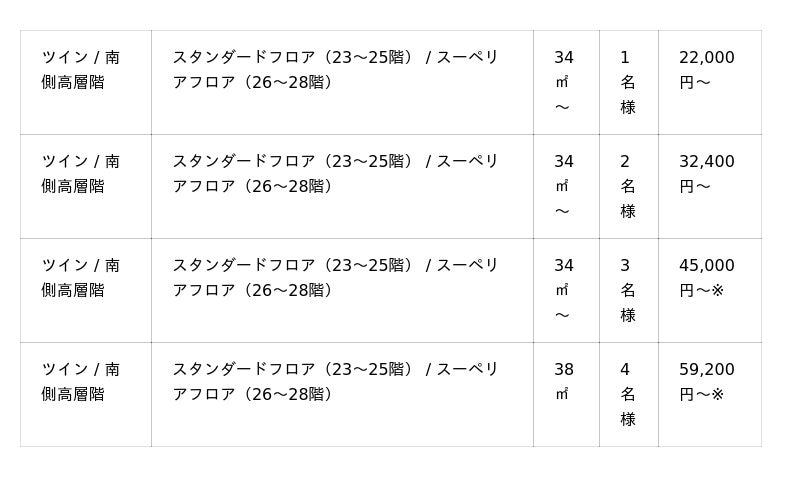 ※4名様でのご利用はスーペリアフロアでご用意します。