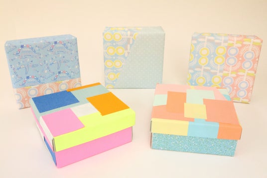 箱を装飾し、メッセージを添える/ 包装紙とリボンでラッピングして完成