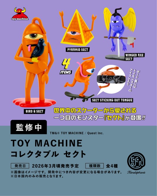 3. TOY MACHINE コレクタブル セクト世界中のスケーターやストリートブランドファンから愛されるスケートボードブランド「TOY MACHINE」の代表キャラクター『セクト』がミニチュアフィギュアで登場!