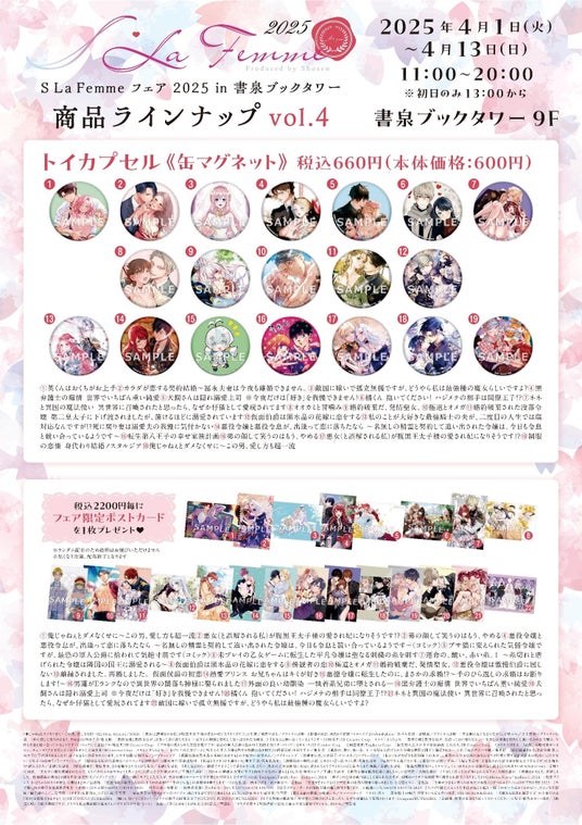 春爛漫(ハート)LOVEがいっぱい詰まった夢空間へようこそ!S La Femmeフェア2025 in秋葉原書泉ブックタワー 4月1日(火)13時より開催!!