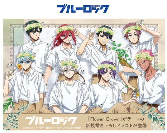 TVアニメ『ブルーロック』の新作Tシャツが、全国アニメイト・アニメイト通販にて8月16日より発売! 花冠をつけた潔や凛たち8人の描き下ろしイラストをデザイン!!