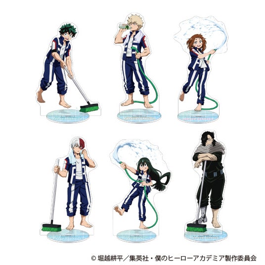 そんな本作より、「アクリルスタンド」や「オーロラアートコレクション」などの新商品が多数発売!商品には、緑谷出久や爆豪勝己ら6人がプールを掃除する、夏らしい描き下ろしビジュアルを使用しています。