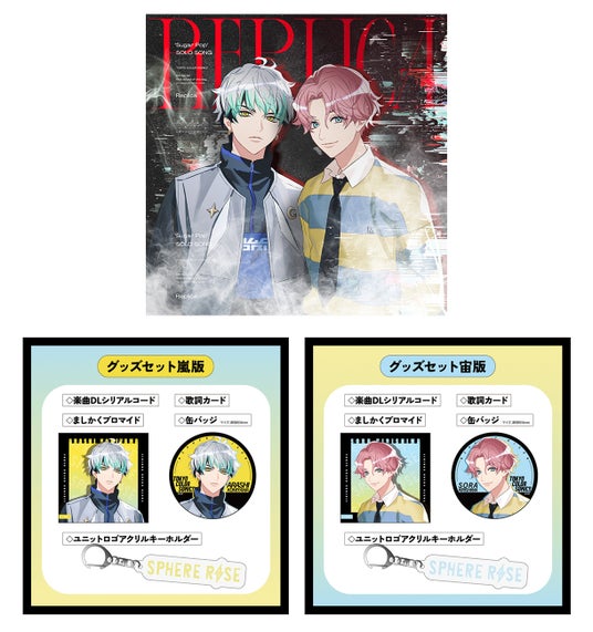 そして、「恋」がテーマの新たな楽曲シリーズ第1弾「東京カラーソニック!! "Sugar Pop" SOLO SONG 嵐」が8月29日に発売されます。楽曲ダウンロードシリアルコードと描き下ろしイラストのアイテムがひとつになった「グッズセット」となっております。嵐版と宙版の2種類あり、それぞれのキャラクターに対応した絵柄のアイテムが付属します(収録楽曲は共通)。