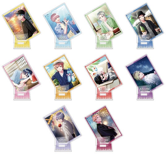 そんな本作より、夏にちなんださまざまなシーンをピックアップした「プレイフルサマー」の描き起こしイラストを使用した新商品が登場! 「アクリルスタンド」「トレーディング缶バッジ」のほか、手書き風のワンポイントがかわいい「トレーディングミニフォト」などをラインナップしています。