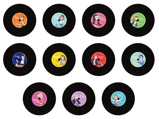 今回、キュートでしなやかな女の子を描き続け、数多くのファンを魅了しているERIMO氏の描き下ろしイラストを使用。ロカビリースタイル衣装に身を包んだLiella!の「アクリルスタンド」や「スクエアキャラバッジコレクション」のほか、レコードをイメージしたデザインがオシャレな「レコード風コースター」など多数の新商品をラインナップ。