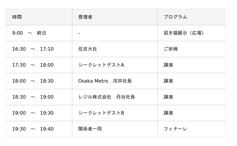 商売繁盛・開運招福のご利益で知られる「初辰さん」で名高い住吉大社をお招きし、特別神事を執り行います。この上ない吉日に、万博という特別な場所でのご祈祷は、まさに一期一会の機会です。●シークレットゲスト2名による大阪未来社会の実現プラン