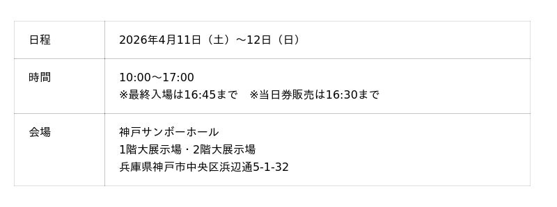 また、ご家族連れでも楽しめる内容となっており、動物好きのお子さまにとっても特別な体験となるはずです。普段なかなか出会えない生きものを間近で観察し、ふれあえる貴重な機会をぜひご体感ください。神戸の秋を彩る特別な2日間、皆さまのご来場を心よりお待ちしております。