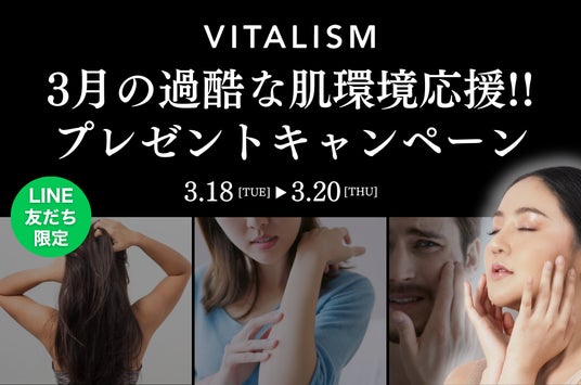 3月は肌環境が過酷に。そんな春に肌や頭皮をやさしくケアできるVITALISMのアイテムをプレゼント!2025年3月18日(火)~3月20日(木)まで公式LINE登録者限定でキャンペーンを開催!