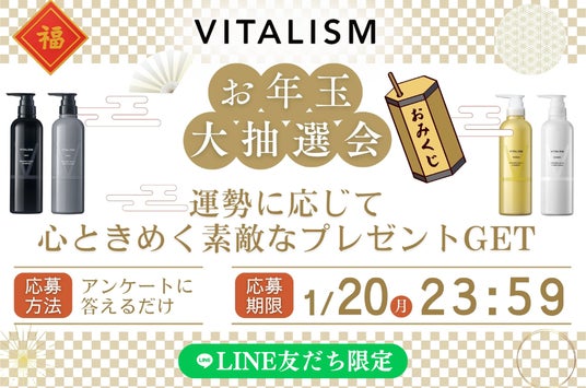 「新春!お年玉大抽選会」トータルケアブランド「VITALISM」の公式LINEにて本年初のキャンペーンを開催!2025年1月18日(土)~1月20日(月)の期間限定で豪華な景品をGET!