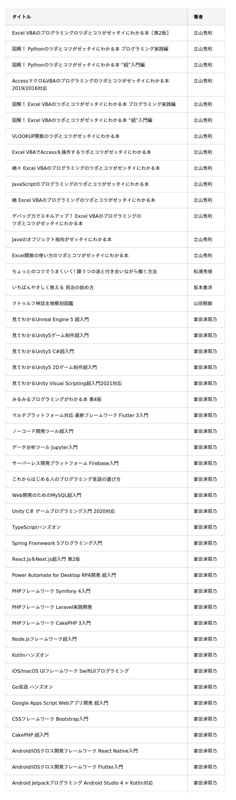 第1弾のラインナップは、プログラミング言語の入門書、ゲーム・アプリ開発関連書籍、Excelなどのビジネスツールの活用術、さらには気軽に楽しめる読み物まで、多岐にわたります。いずれも多くの読者に支持されてきた人気タイトルです。