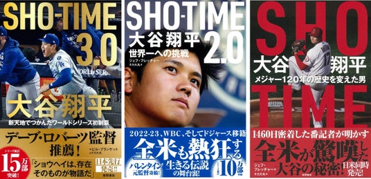 徳間書店「SHO-TIME」シリーズ (左から)『SHO-TIME 3.0 大谷翔平 新天地でつかんだワールドシリーズ初制覇』『SHO-TIME 2.0 大谷翔平 世界一への挑戦』『SHO-TIME 大谷翔平 メジャー120年の歴史を変えた男』