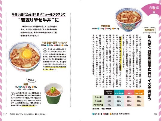 おすすめのメイン料理や、サイドメニューとの組み合わせ方などをイラストでわかりやすく解説。読み進めるうちに、さまざまな食事シーンでベストなPFCバランス(P:たんぱく質、F:脂質、C:炭水化物)のメニューを選べるようになります。
