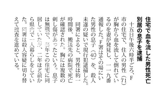 ■自宅で血を流した男性死亡別居の息子を逮捕