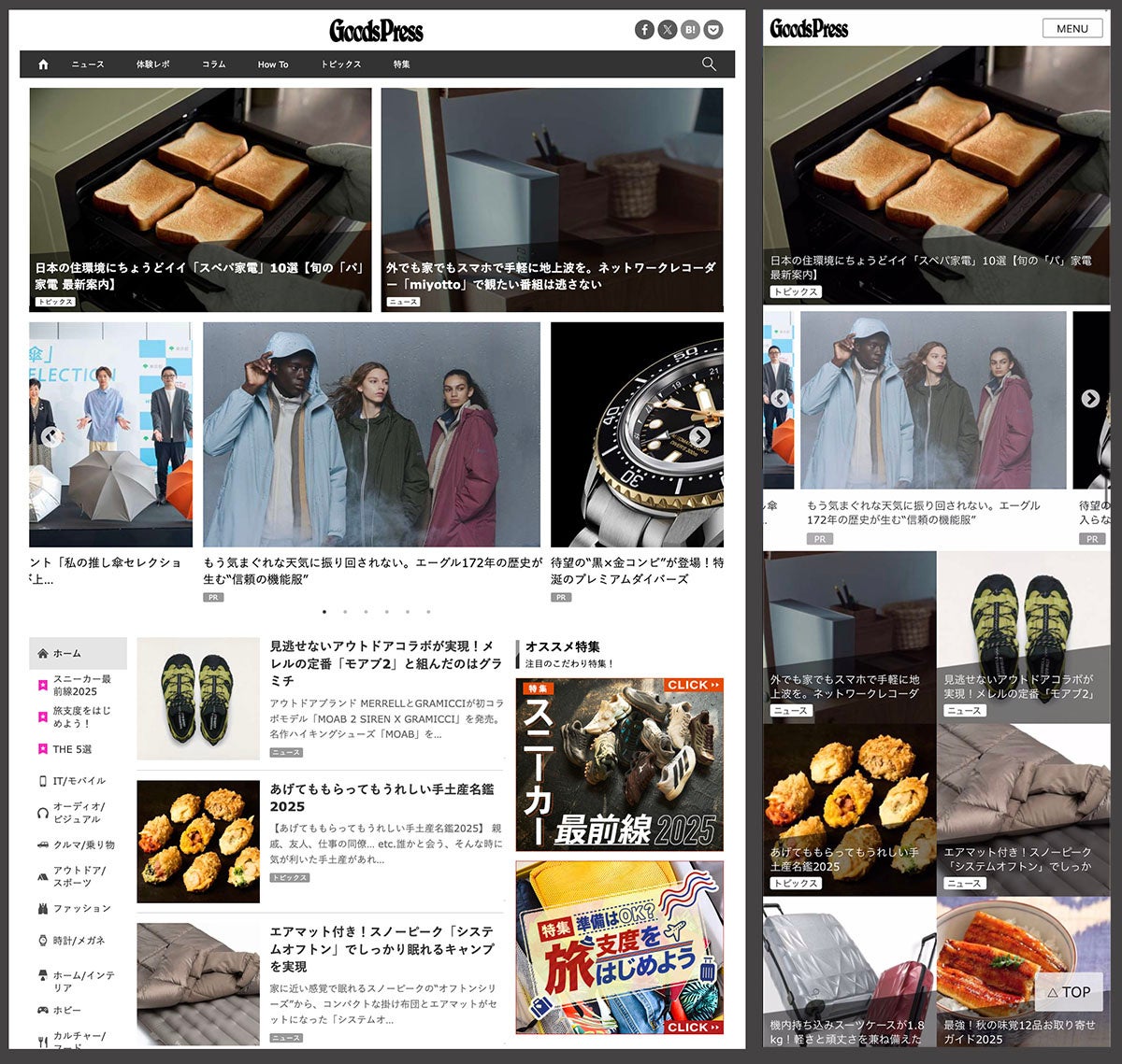 『GoodsPress Web』では、雑誌『GoodsPress』で培った確かな編集力と取材力を基盤に、Web独自のスピード感ある情報発信を実現します。また、読者とのコミュニケーションを重視し、SNSや動画コンテンツなども積極的に活用して、より多角的な情報提供を行ってまいります。■ 関連リンク