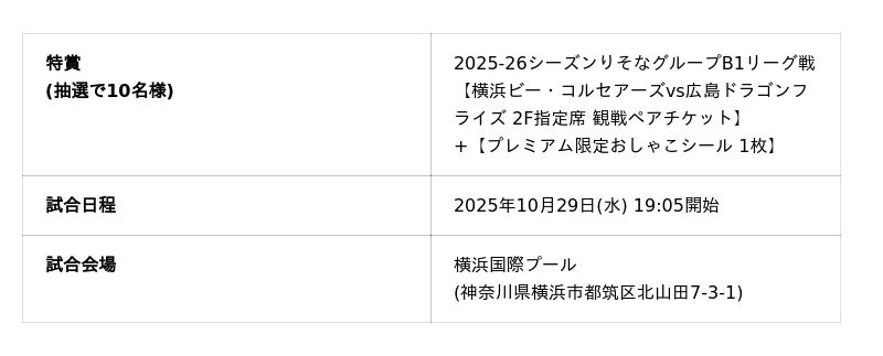 ピュアクリエイト株式会社(本社:埼玉県熊谷市)が運営する「おしゃれcafe」は、プロバスケットボールBリーグ所属「横浜ビー・コルセアーズ」を応援する企画として、2025年10月29日(水)に開催される広島ドラゴンフライズ戦の観戦ペアチケットが当たるプレゼントキャンペーンを開催します。