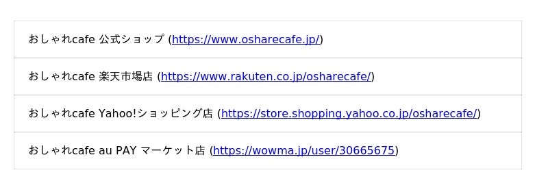 営業窓口メール:shiire@osharecafe.com