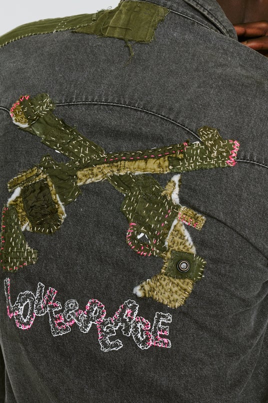 roargunsのアーカイブにJunAleの刺し子を施した作品を十数点制作。roargunsのモードかつ無骨な世界観とJunAleの繊細な刺し子が融合し、日本の伝統とファッションが交差するアートピースが誕生しました。
