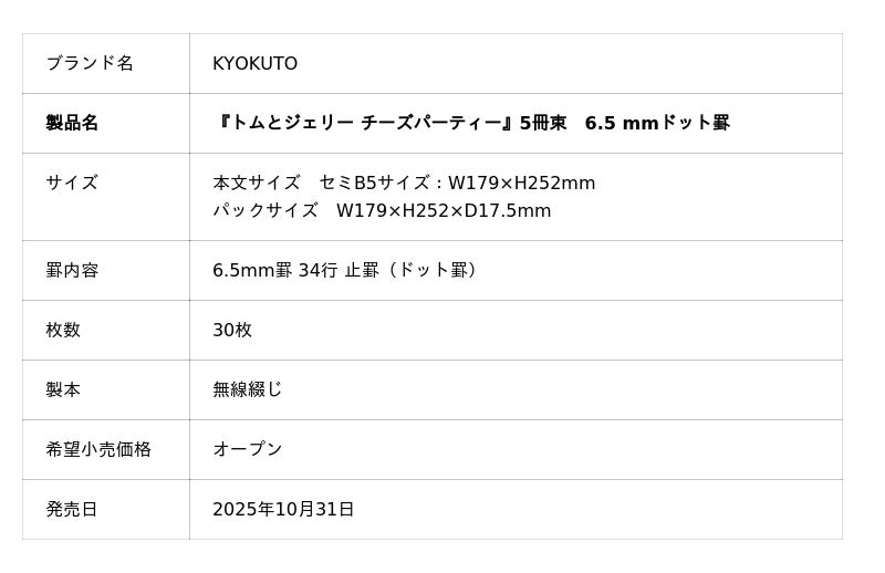 『トムとジェリー チーズパーティー』5冊束 6.5mmドット罫