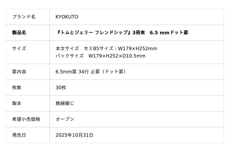 『トムとジェリー フレンドシップ』3冊束 6.5mmドット罫