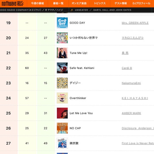 R&B/ソウル チャート1位獲得(10月11日現在)