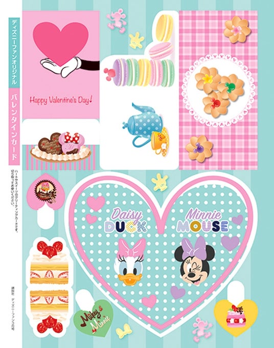 スペシャルとじ込み企画は、「ディズニーファン」オリジナル バレンタインカード! ハートやスイーツのグリーティングカードが5種類! リボンをつけて楽しめるハート形の飾りもついています。親しい人に気持ちを伝えたいときにお使いください!