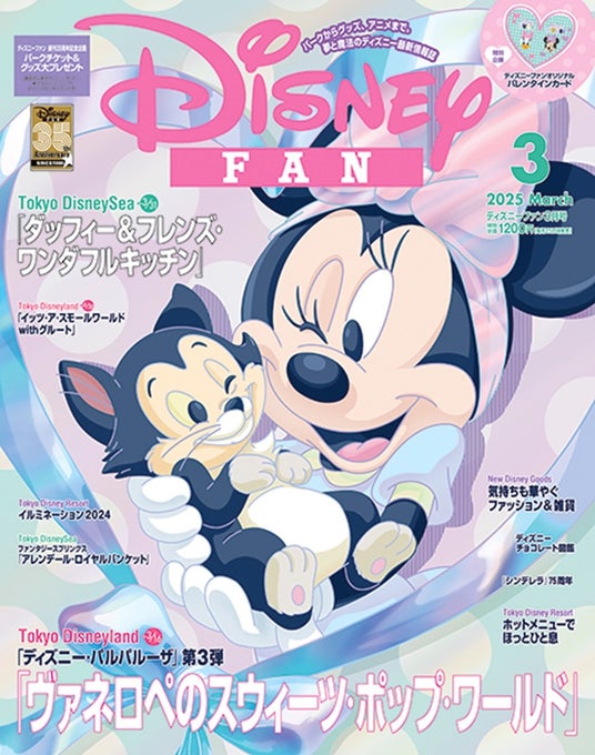 「ディズニーファン」3月号は「ディズニー・パルパルーザ」第3弾総力レポート! 創刊35周年記念のパークチケット20組40名ほか大プレゼント、オリジナルバレンタインカードつき特大号! 1月28日発売
