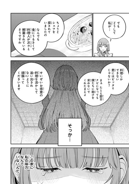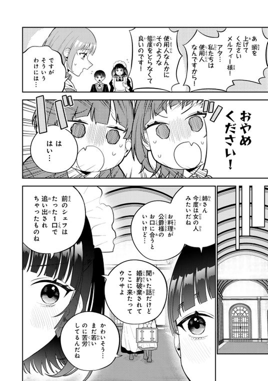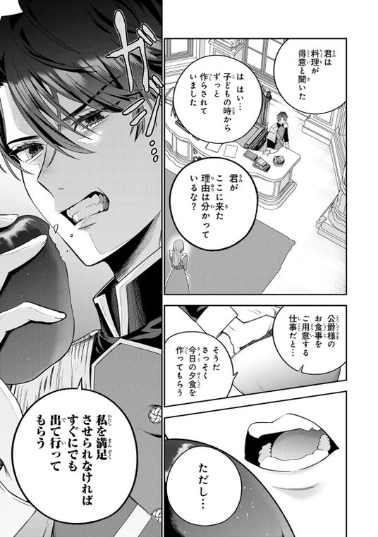 居場所がなくなったメルフィーは、「冷酷公爵」ルークの元でシェフとして働くことになる。