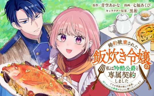 『婚約破棄された飯炊き令嬢の私は冷酷公爵と専属契約しました~ですが胃袋を掴んだ結果、冷たかった公爵様がどんどん優しくなっています~』(原作:青空あかな / 漫画:七福あくび / キャラクター原案:黒裄)が2025年2月4日よりマンガアプリPalcy(パルシィ)にて連載配信をスタートします。
