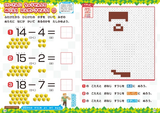 「マインクラフト」で楽しく学習! 計算問題を解いて答えのマス目を塗っていくと、人気MOBが現れる! できたよシールが付いた「けいさん・ぬりえ ドリル」が2月28日発売!