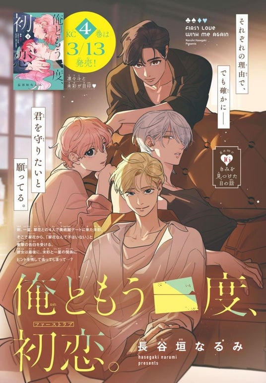 表紙を飾るのは、いつだってみんなの注目度No.1ラブストーリー『俺ともう一度、初恋。』(長谷垣なるみ)の未彩と一星!フォトェディング風の2人がキラキラまぶしい★