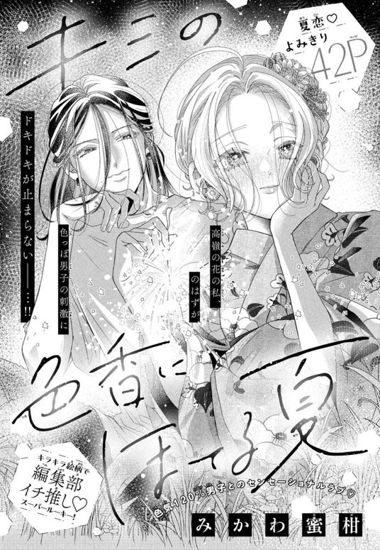 編集部イチ推しのスーパールーキーが描くひと夏の恋物語『キミの色香にほてる夏』(みかわ蜜柑)が読みきりで登場!色気120%男子・省吾と眉目秀麗な高嶺の花女子・麗美のセンセーショナル・ラブ!キラキラ絵柄に夢中になること間違いなし★