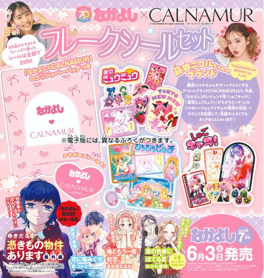 6月3日(火)発売のなかよし7月号は藤田ニコルさんのブランド「CALNAMUR」×なかよしのSPコラボフレークシールセットがふろくに登場!SP読みきりも満載で大充実の「夏のときめき」号♪