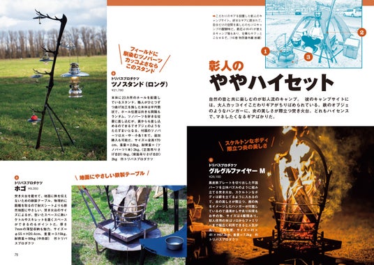 バーナー、ランタン、焚き火台、テント、タープ、シュラフ、コット、マット、ザックはもちろん周辺のお助けギアもたっぷり収録!