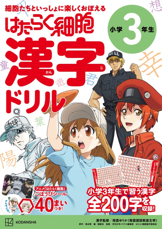 株式会社講談社は、2025年7月7日(月)に『はたらく細胞 ひらがな・カタカナドリル』『はたらく細胞 漢字ドリル 小学1年生』『はたらく細胞 漢字ドリル 小学2年生』を、7月23日(水)に『はたらく細胞 漢字ドリル 小学3年生』を発売します。