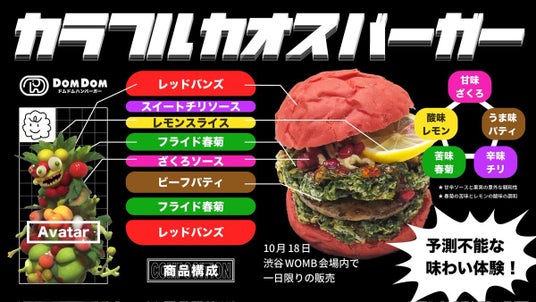 18日限定で販売されるドムドムハンバーガー×バーバパパのアバターがコラボした「カラフルカオスバーガー」