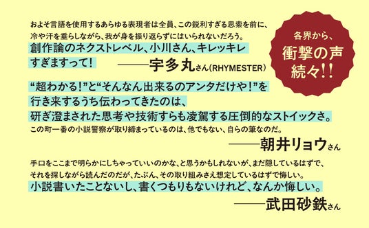 「伝える」ではない、「伝わる」言葉を、文章を生み出すために、小説家はいつも何を考えているのか――? 直木賞作家・小川哲が、自身も実践する企業秘密をおしみなく開陳!小説--それは、作者と読者のコミュニケーション。
