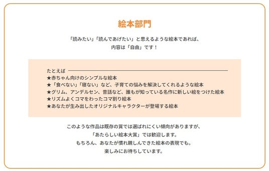 絵本部門:絵や文章を書くのが好きな人、物語を伝えたい人へ