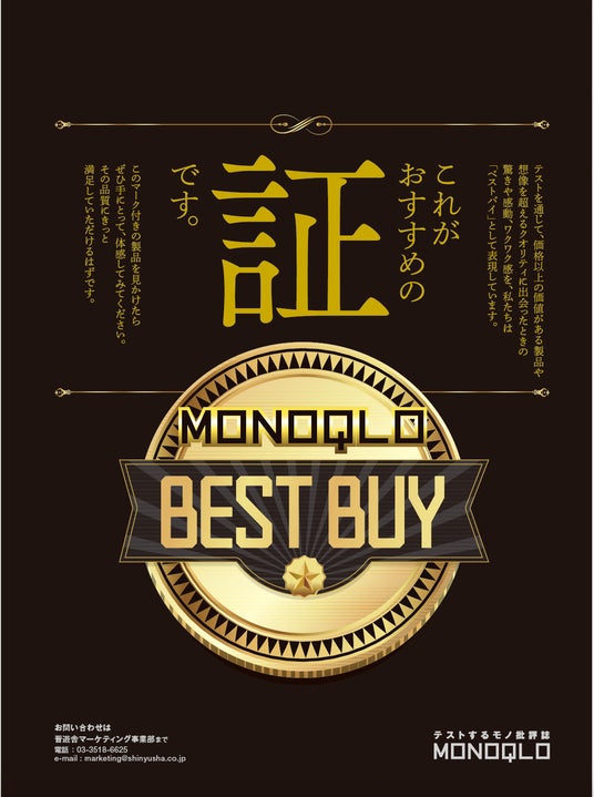 “使う人目線”の厳しいテストの結果、編集部が “本当におすすめできる” と認めた製品に認証マークを付与しています。いくらお金を積んでも手に入らないこのマークは、受賞企業様の商品販促としてご活用いただいています。