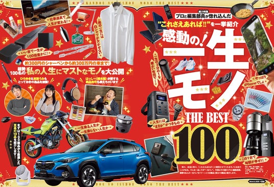 3月号は「感動の一生モノ the BEST 100」を総力特集! プロと編集部員が惚れ込んだ“これさえあれば!! ” と言える銘品たちを一挙紹介します。他にも、マネするだけで毎月ハッピーになれる「おこづかいを5000円アップさせる裏ワザ50」や、美味しくて罪悪感ナシなおすすめを探す「糖質オフグルメ辛口採点簿」など、3月号も暮らしをアップデートする情報を厳選してお届けします。