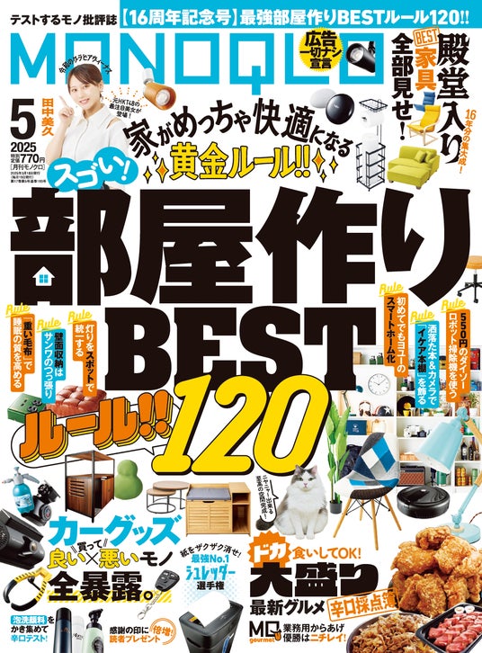 5月号の総力特集は「スゴい! 部屋作りのBESTルール120」! 新生活に向けて、本誌が16年をかけて集めた、めっちゃ居心地のいいお家を作るスゴ技&おすすめアイテムを全部見せちゃいます。人気俳優・田中美久さんがお部屋事情を激白してくれた、特別インタビューも見逃せません。他にも、憧れの車内空間を作りたい人必見の「カーグッズ買って良いもの×ダメなもの」や「デカ盛り食品」も掲載! 5月号も暮らしをアップデートする情報を厳選してお届けします。