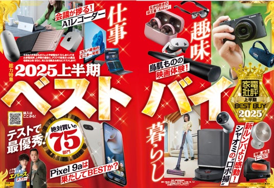 さらに詳しい比較テスト結果やベストバイに選出した理由は誌面(家電批評25年7月号)をチェック! 晋遊舎のプレスリリースでは、今後も『家電批評』発行日に合わせて「BEST BUY」受賞アイテムを発信します。 お楽しみに!