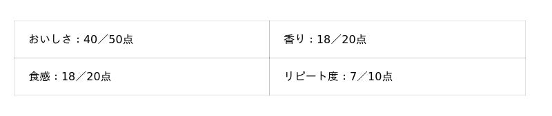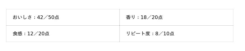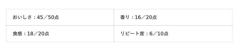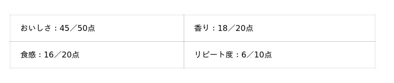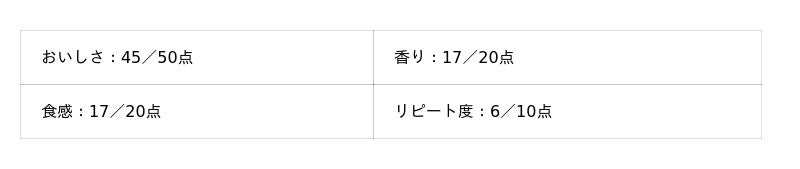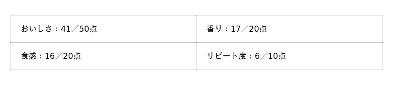 - おいしさ:50点満点