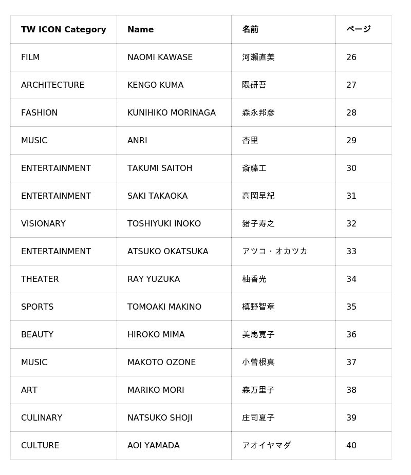 ■特集「TW ICONS」:各界のトップランナー15名が体現する「文化の継承」