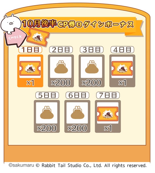 旬の具材が獲得できる10月後半CPセットで使えるキャンペーン券が獲得できるログインボーナスです。