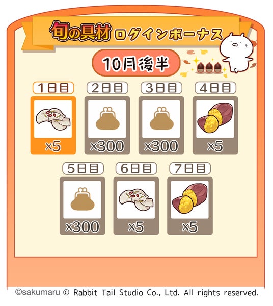 さまざまな新規ログインボーナスが開催!10月後半限定ステージで役立つ具材などもゲットできるので、もれなくログインしよう!