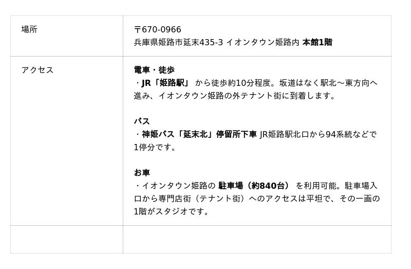 「Ballet studio Compass」イオンタウン姫路にて実施。子どもから大人まで、バレエを通して心と身体を整えるスタジオ。礼儀や表現力、健康や姿勢づくりを大切にしています。