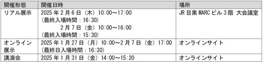 ○リアル展示は2025年2月6日(木)、7日(金)にJR目黒MARCビルで初開催となり、オンライン展示は1月27日(月)~2月7日(金)に開催します。