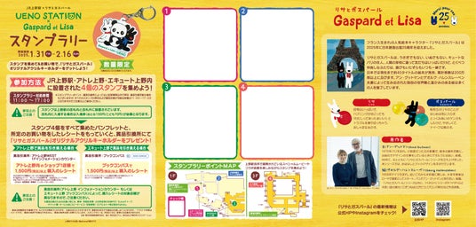 上野駅、アトレ上野、エキュート上野に設置されている『リサとガスパール』のパンダアートのスタンプを4個集め、対象店舗で購入条件を達成されたお客さまにオリジナルのアクリルキーホルダーをプレゼントします。