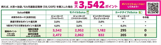 ※カードタイプのSuicaでの定期券購入では貯まりません。