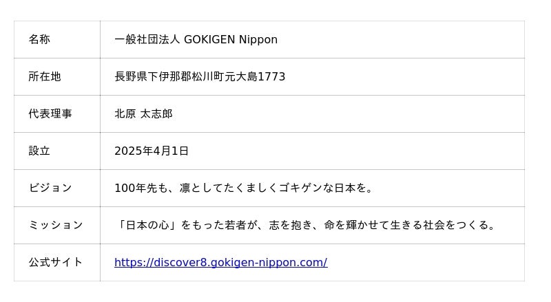 2018年から若者と地域をつなぐ交流活動を開始し、2025年4月に一般社団法人を設立。今回の「Discover 8」は、これまでの活動を集大成した初の年間プログラムです。